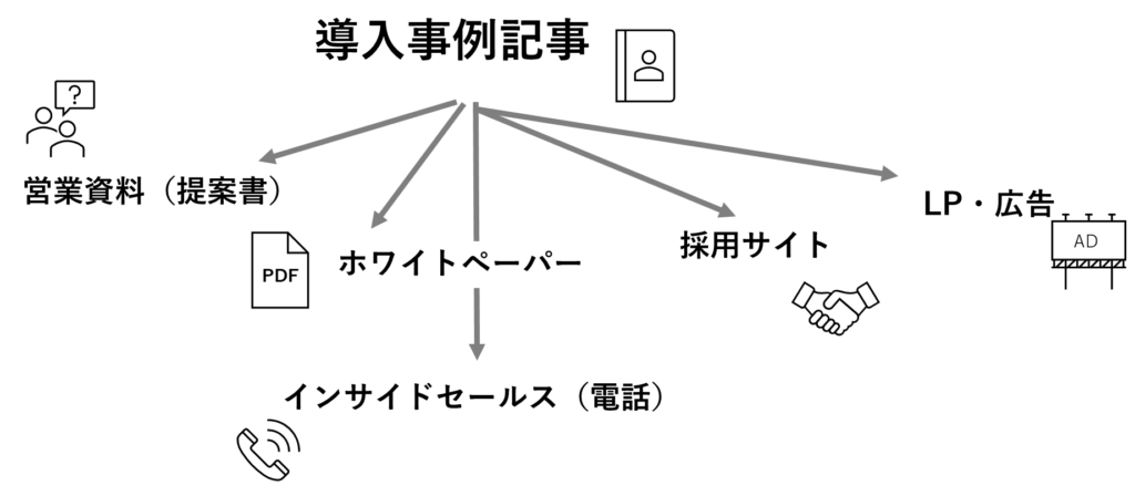 導入事例は、Webサイトに掲載して終わりではありません。せっかく作った資産を、営業活動の全フェーズで活用しましょう。