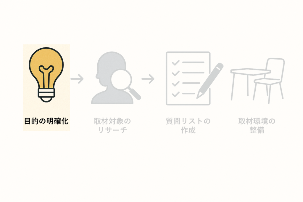 以下では、記事を成功させるための基本準備を目的の明確化から取材環境の整備までの流れを解説します。