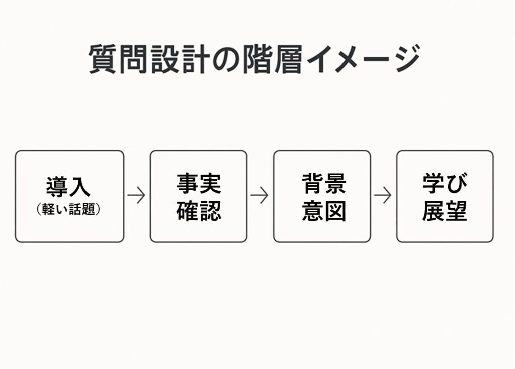質問設計は、段階的に深めていく構造を意識するとスムーズです。