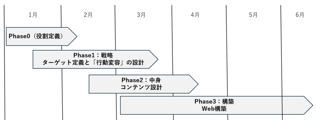 - ※全体の事業戦略とのすり合わせ(Phase0)に時間がかかるケースが多いです。