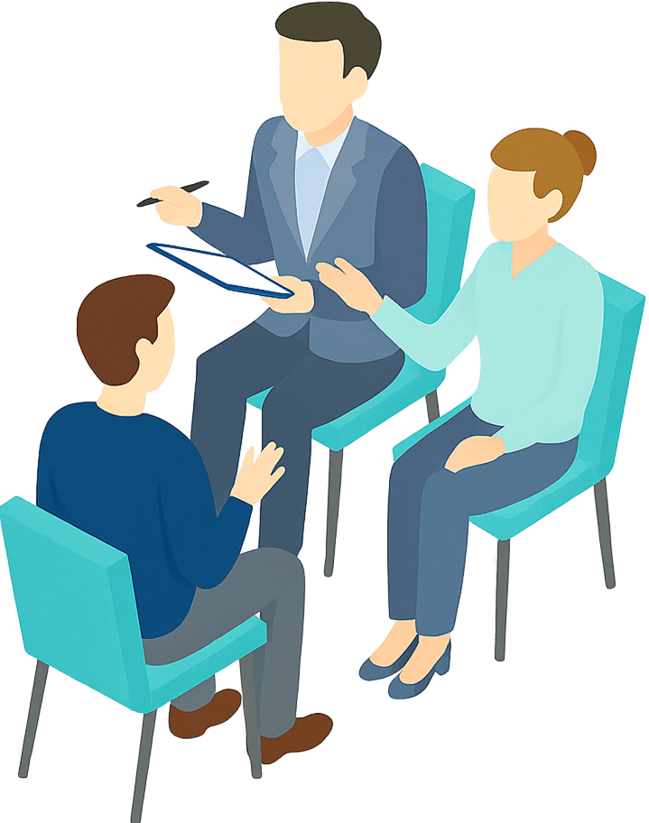 取材の前にインタビュアーと内容や進行について打ち合わせを行います。