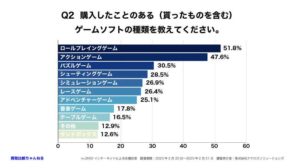 51.8%の人がロールプレイングゲームを購入した(貰った)ことがあることが分かりました。