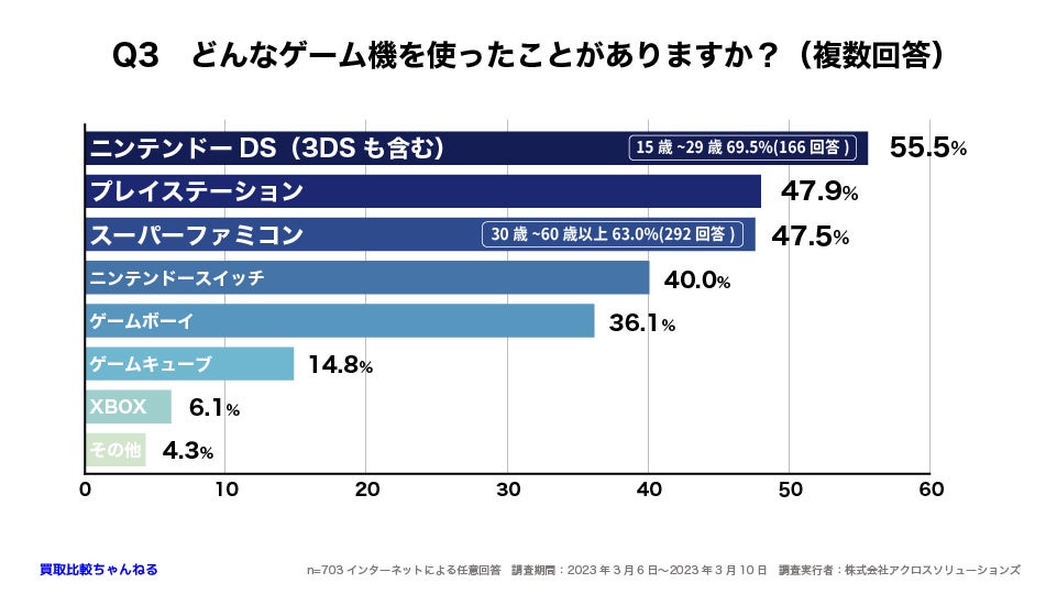 最も多かった回答は「ニンテンドーDS(3DSも含む)」で55.5%であることが分かりました。