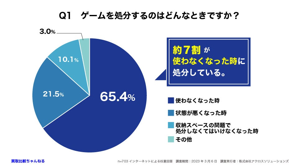 ゲームを処分するのは「使わなくなったとき」と答えた人が65.4%で最も多いことが分かりました。