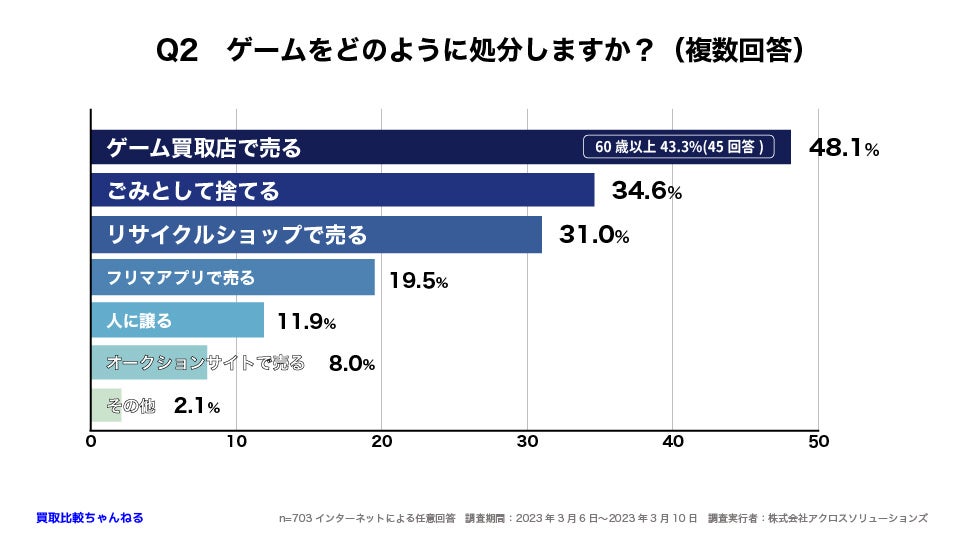 ゲームの処分の方法として最も多かったのは「ゲーム買取店」で48.1%でした。