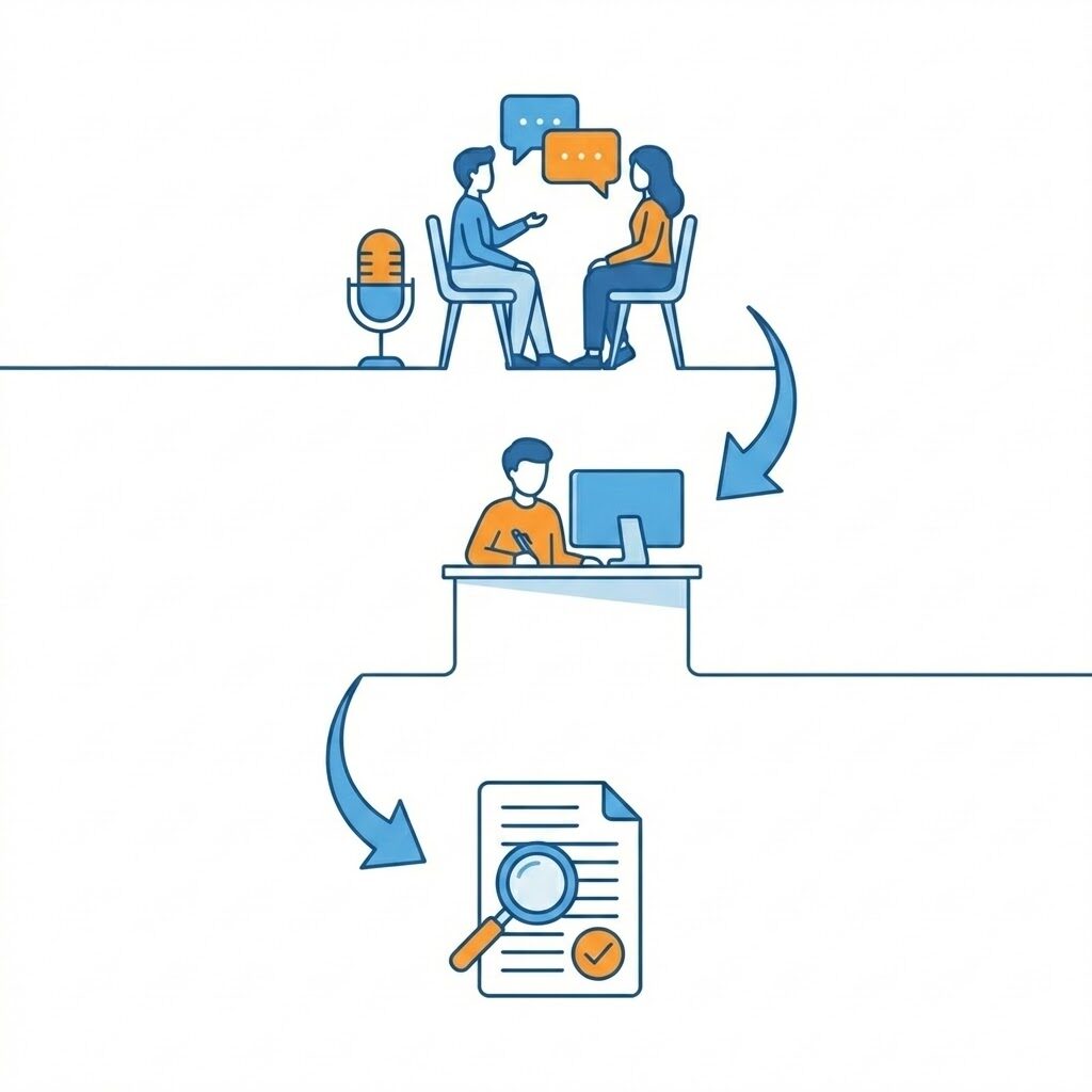 記事の目的や読者像を整理し、取材の価値を最大化する設計を行います。