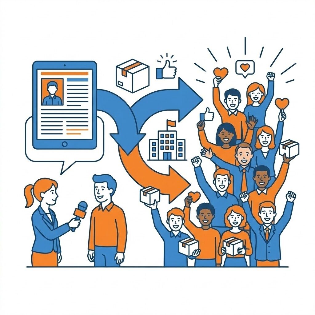 導入事例や使用者インタビューは、読者に「客観的な評価」として認識されやすいコンテンツです。